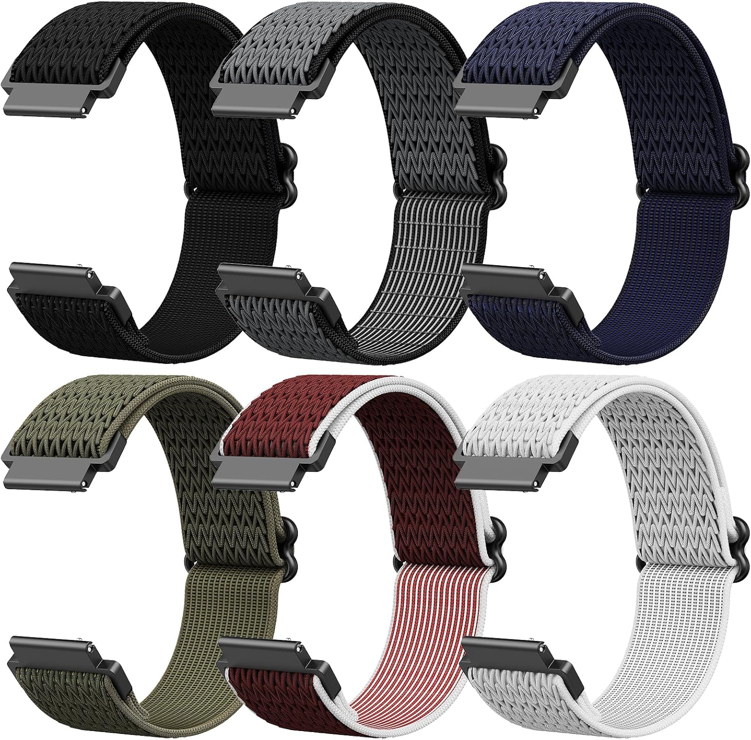 6-Pack Elastic Nylon Watch Bands for BIGGERFIVE Brave 2 Smartwatch, Lightweight Soft Stretchable Replacement Straps for BW01 Brave / BW02 Brave 2 Men & Women