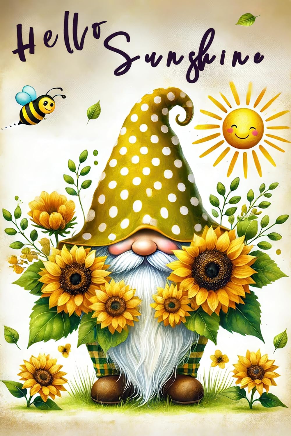 - Polyester Fabric:Made with polyester fabric, this hello sunshine garden flag ensures vivid color retention and intricate detailing, bringing the sunny gnome and sunflower scene to life in your garden.