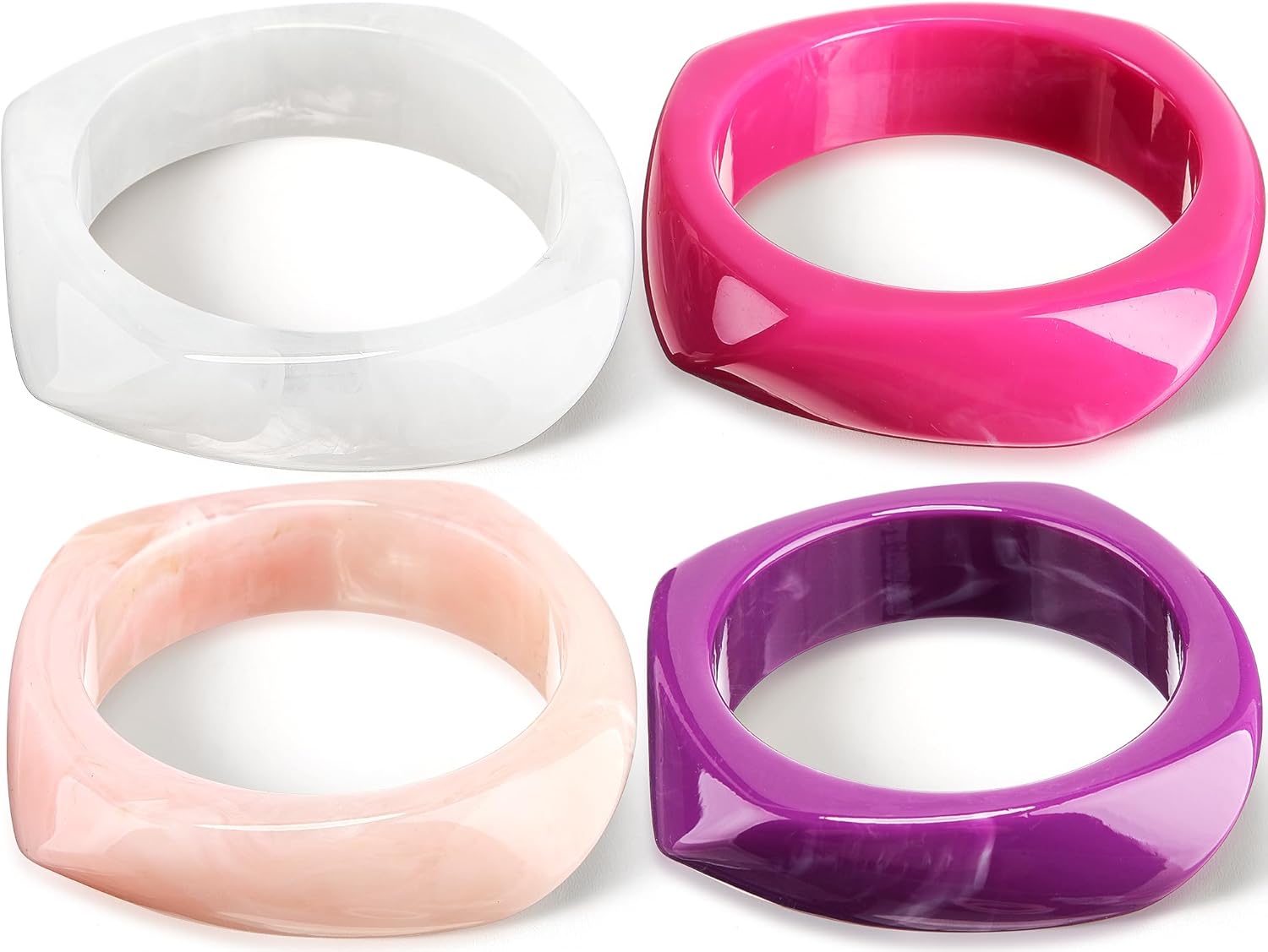Landical Colorful Square Acrylic Resin Bangle Bracelet Wide Geometric Irregular Wristbands Women