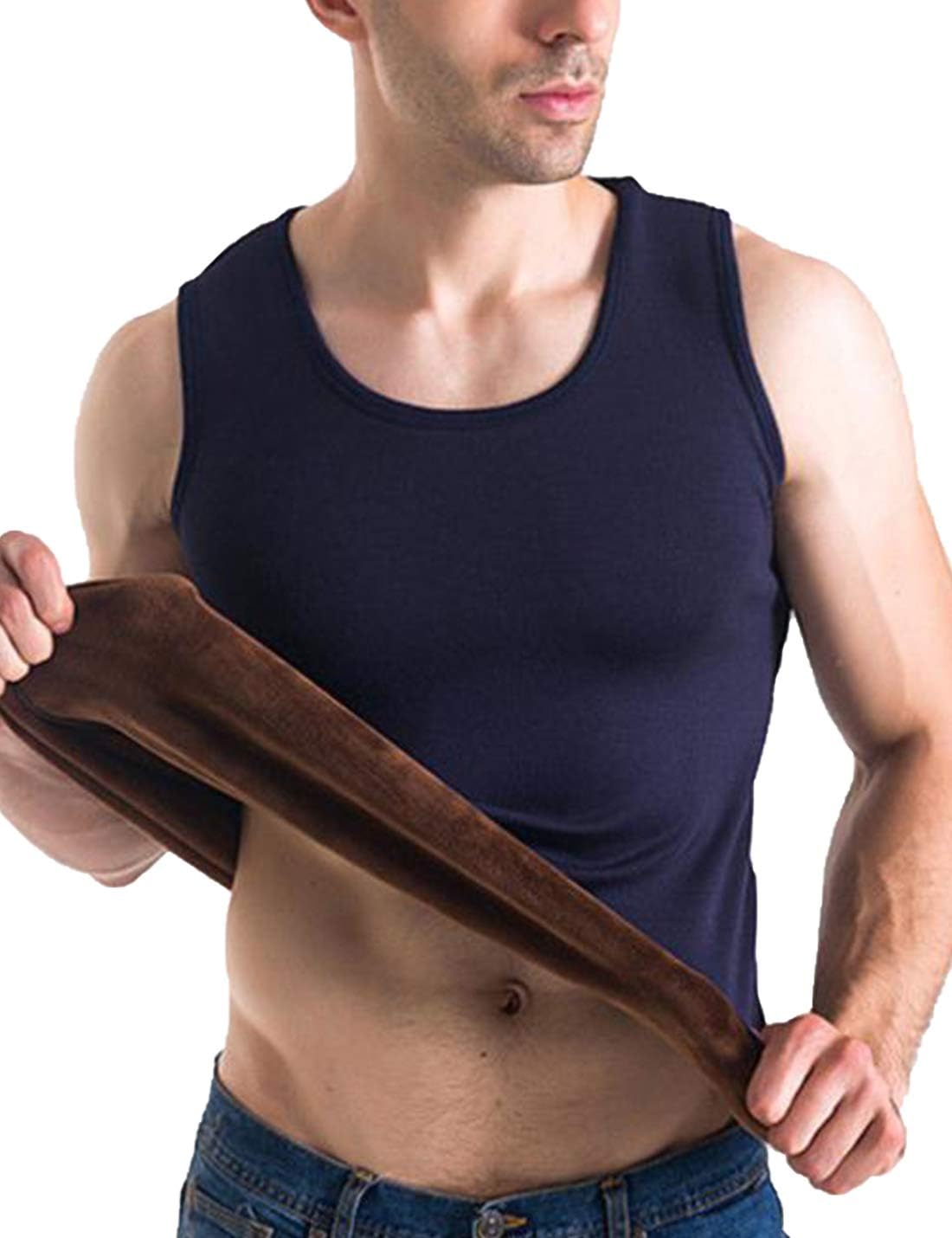 Flygo Mens Cotton Winter Warm Thermal Tank Top Fleece Lined Underwear Sleeveless Vest