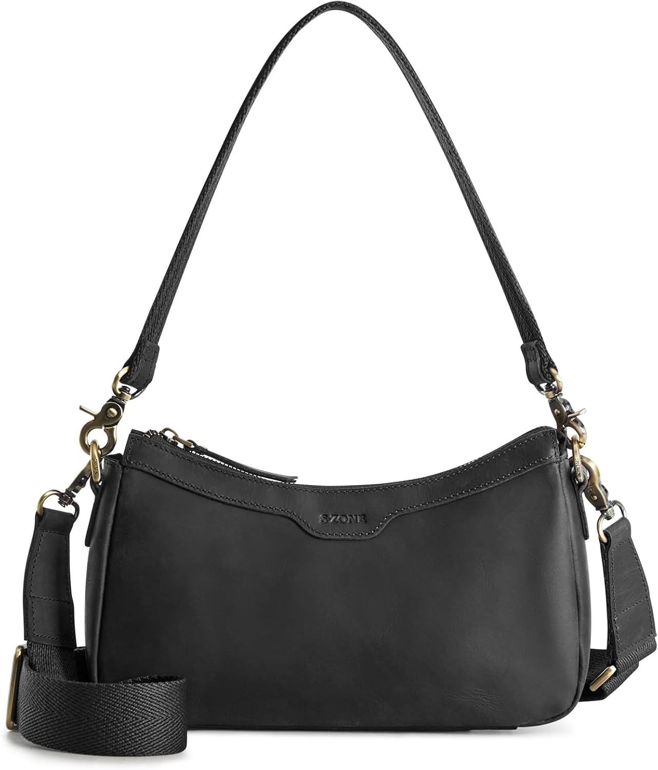 S-ZONE Leather Shoulder Bag for Women Small Crossbody Bags Hobo Purses with 2 Straps
