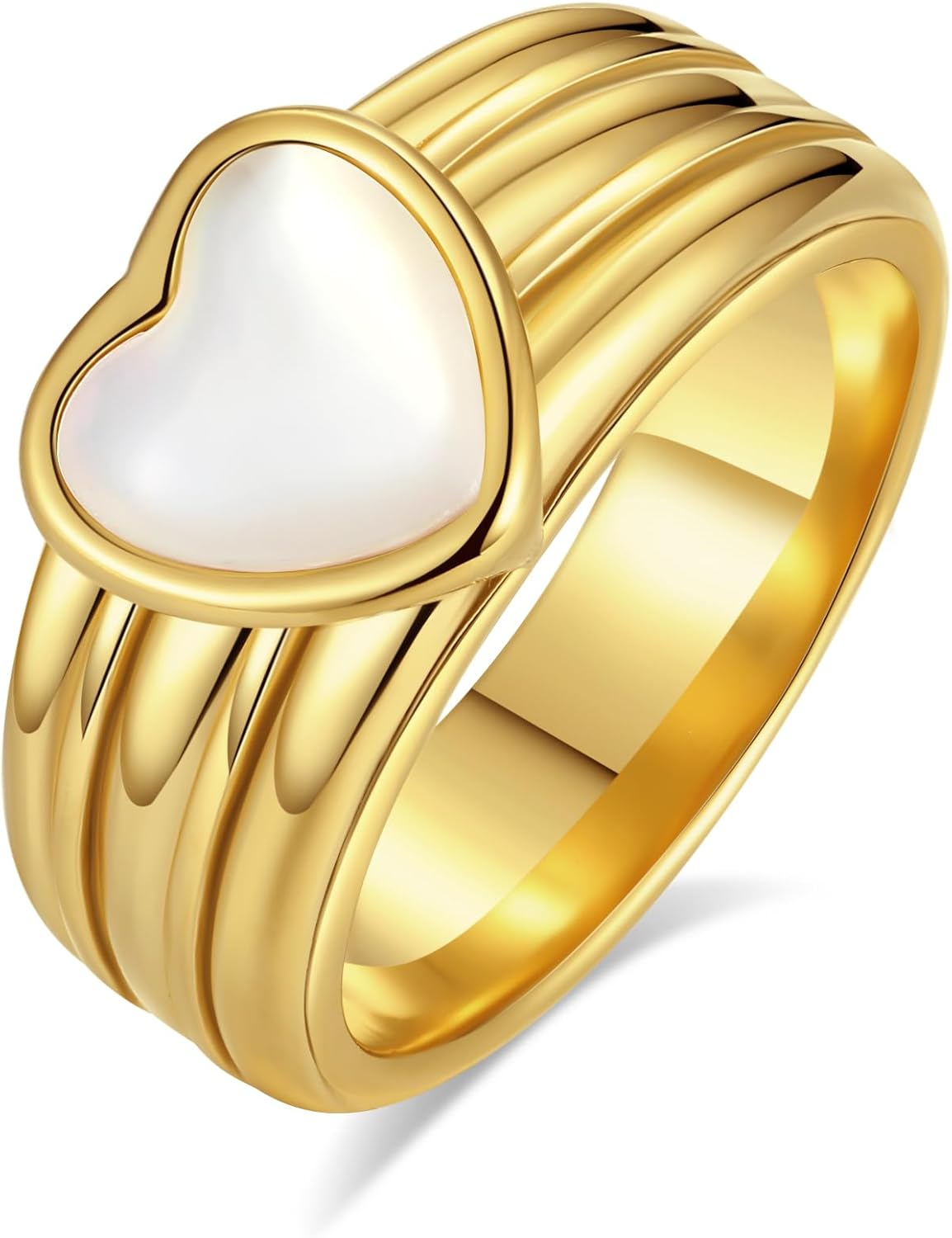 YeGieonr Chunky Gold Statement Rings for Women Non Tarnish 18K Gold-Plated, Waterproof Stainless Steel Gold Ring, Bold Fashion Jewelry for Everyday Wear or Stacking