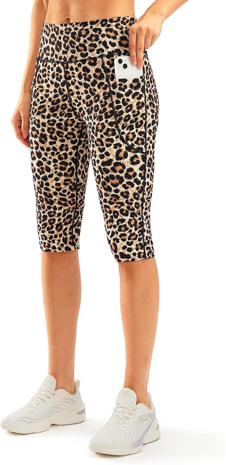 SANTINY Women's Knee Length Capri Leggings with Pockets High Waisted Workout Exercise Yoga Capris Pants for Women