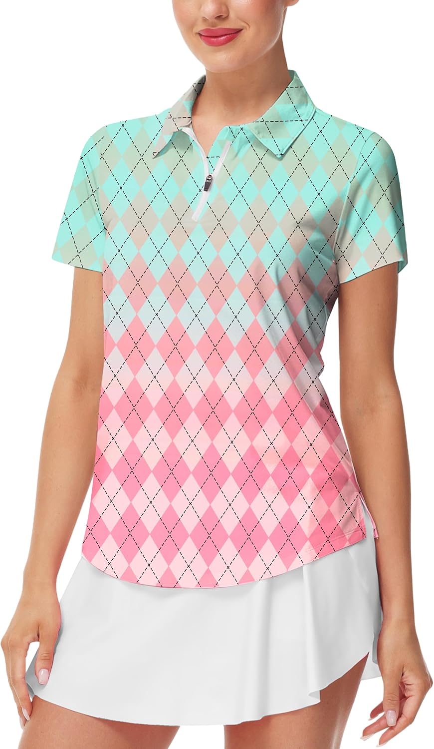 AOBUTE Women's Short Sleeve Golf Shirts Gradient 1/4 Zip Tennis Shirt