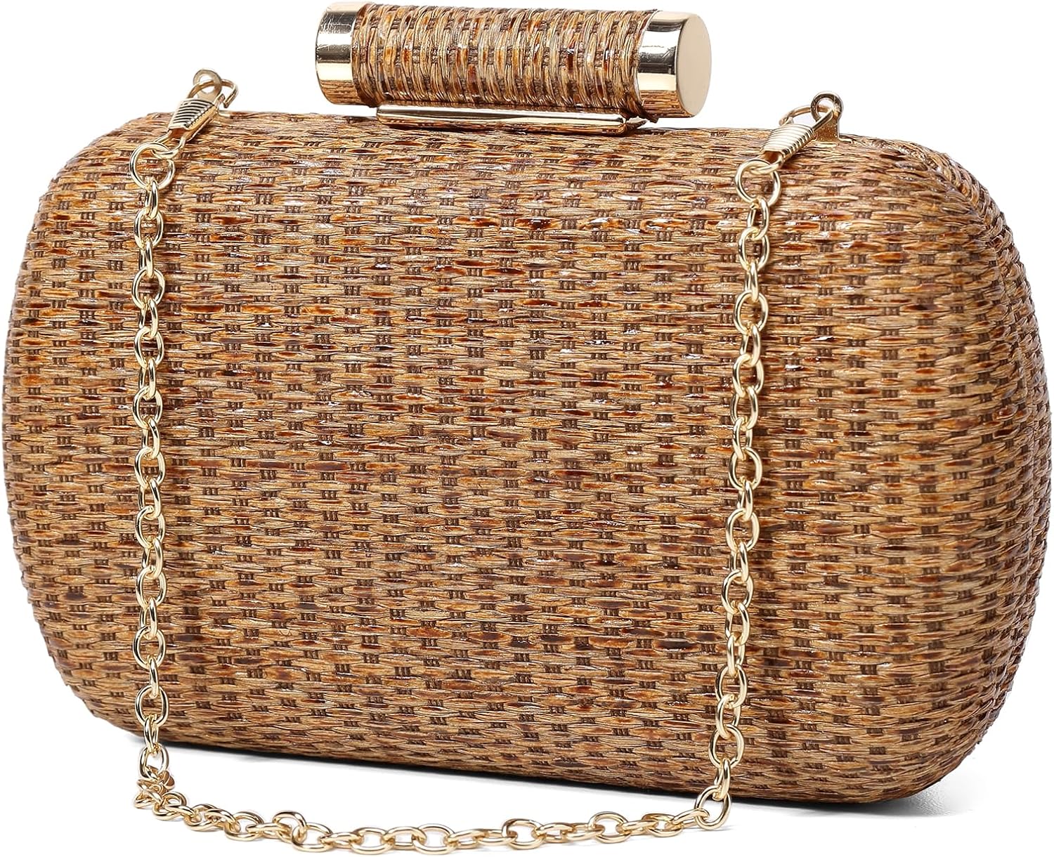 Straw Clutch Purse for Women, Hand-Woven Wicker Evening Handbag, Raffia Party Wedding Beach Bag for Summer
