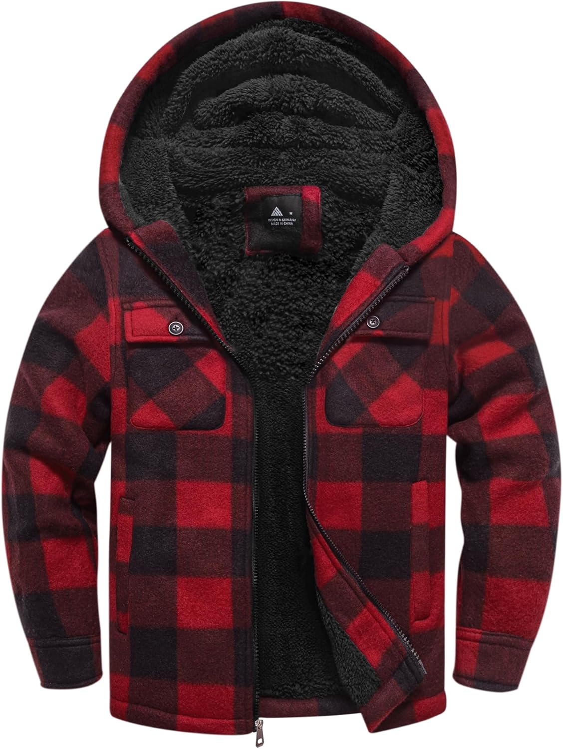 V VALANCH Boys Zip-up Hoodies Fleece Lined Plaid Sweatshirt Jacket Hooded Flannel Sherpa Lined Winter Coat for Kids 6-15 Years