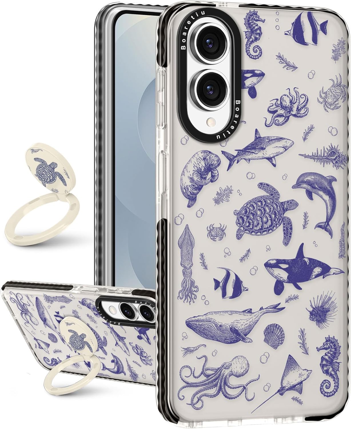 Boaretiu for Samsung Galaxy S25 Edge Case - with Stand Cute Kawaii Fashion 360° Rotate Ring Holder Kickstand Sea Fish for Women Girls Boys Teens Girly for Galaxy S25 Edge Case