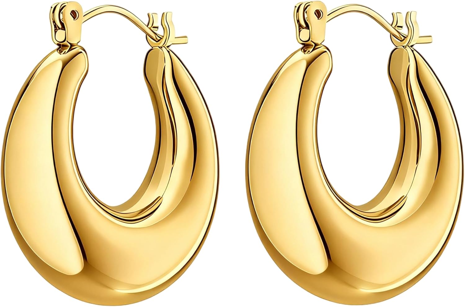 18K Gold Plated/Silver Minimalist Chunky Hoop Earrings | Hypoallergenic Lightweight Classic Circle Earrings | Ingenious Design Trendy Gold Silver Earrings for Women