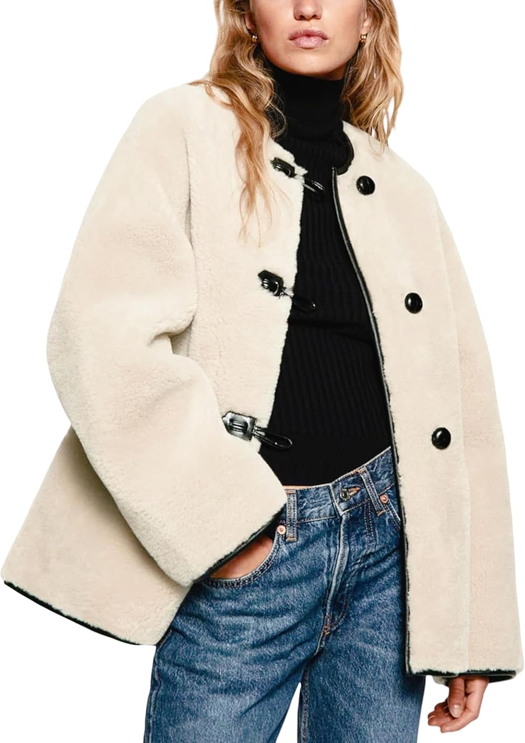 Women Faux Fur Jackets Loose Fit Fleece Long Sleeve Buttons Shaggy Winter Warm Outerwear Coats
