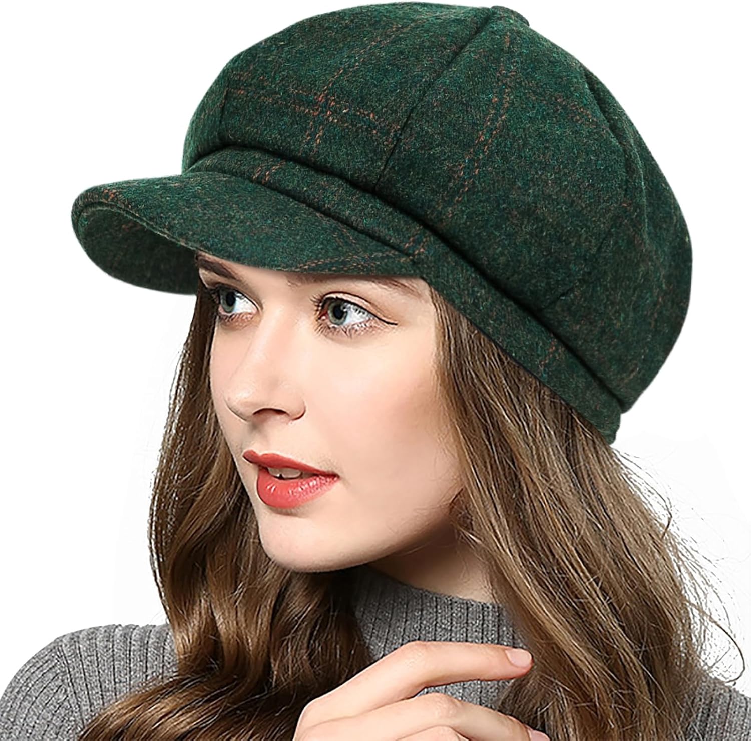 Women's Newsboy Hats Gatsby Ivy Cabbie Hat Wool Beret Paperboy Cap for Women Green Hat