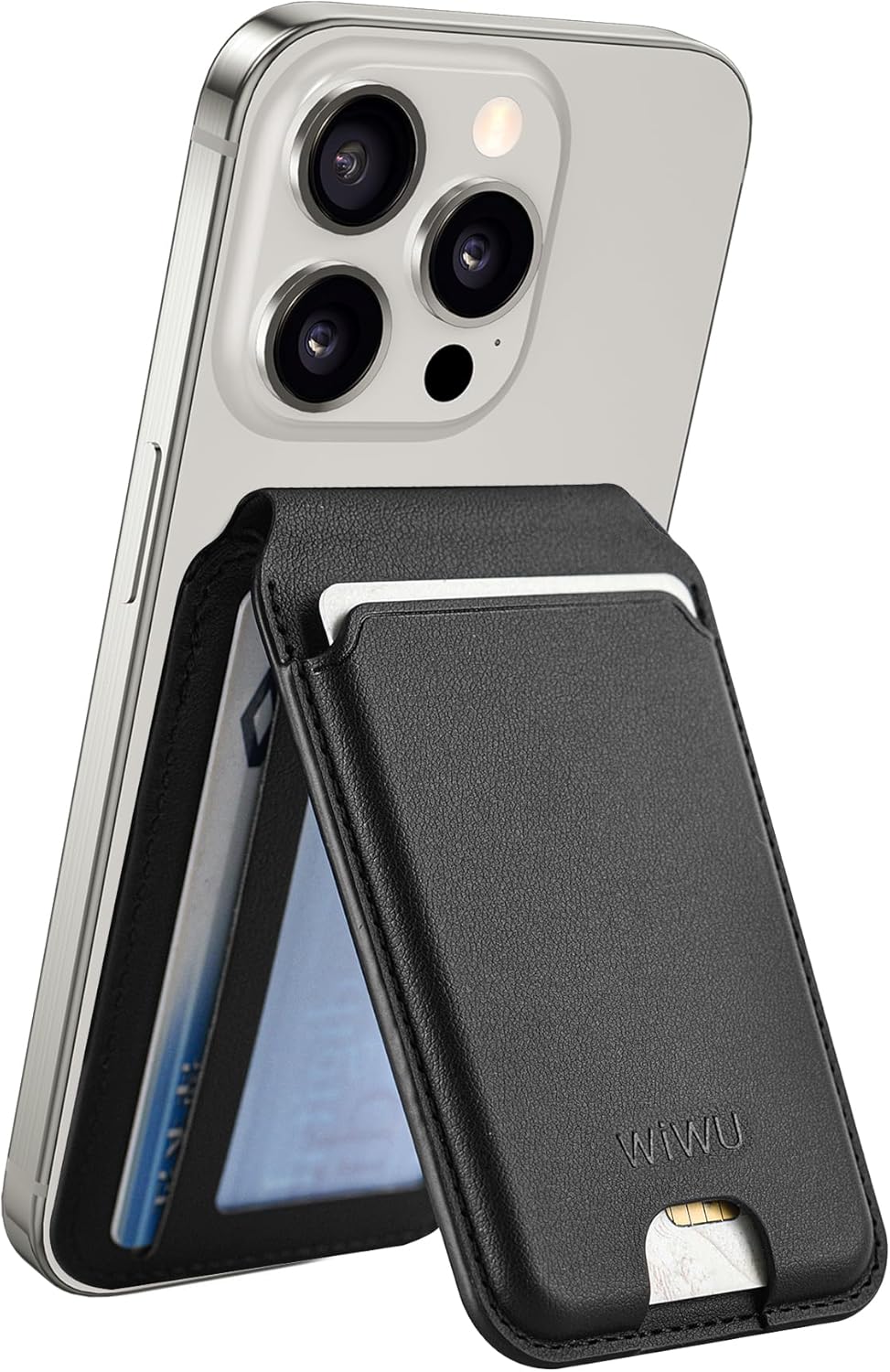 WIWU for MagSafe Wallet 5 Card Holder with Adjustable Stand RFID Blocking Strong Magnetic Ultra Slim Travel Leather Wallet for iPhone 17/16/15/14/13/12 Series Android