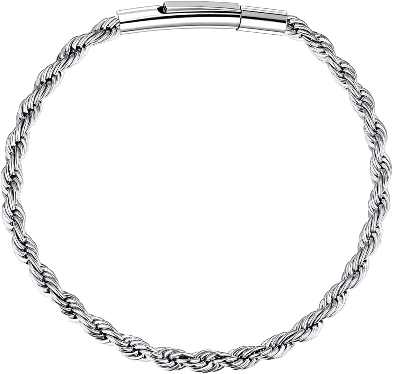 BBXBD Stainless Steel Rope Silve Bracelet for Men Miami Chain Bracelets for Men, 3mm/4mm Wide, 6.5" 7" 7.5" 8" 8.5" Inch Hip Hop Mens Bracelets, Valentine's Day Jewelry Send Gift Box