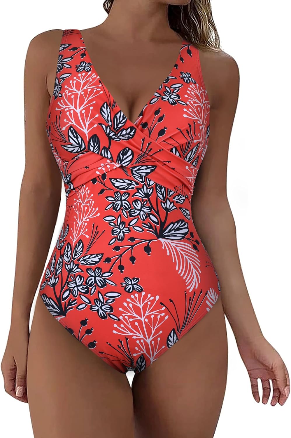 Hilor Women's Underwire Swimsuits Tummy Control One Piece Bathing Suit Twist V Neck Slimming Swimwear