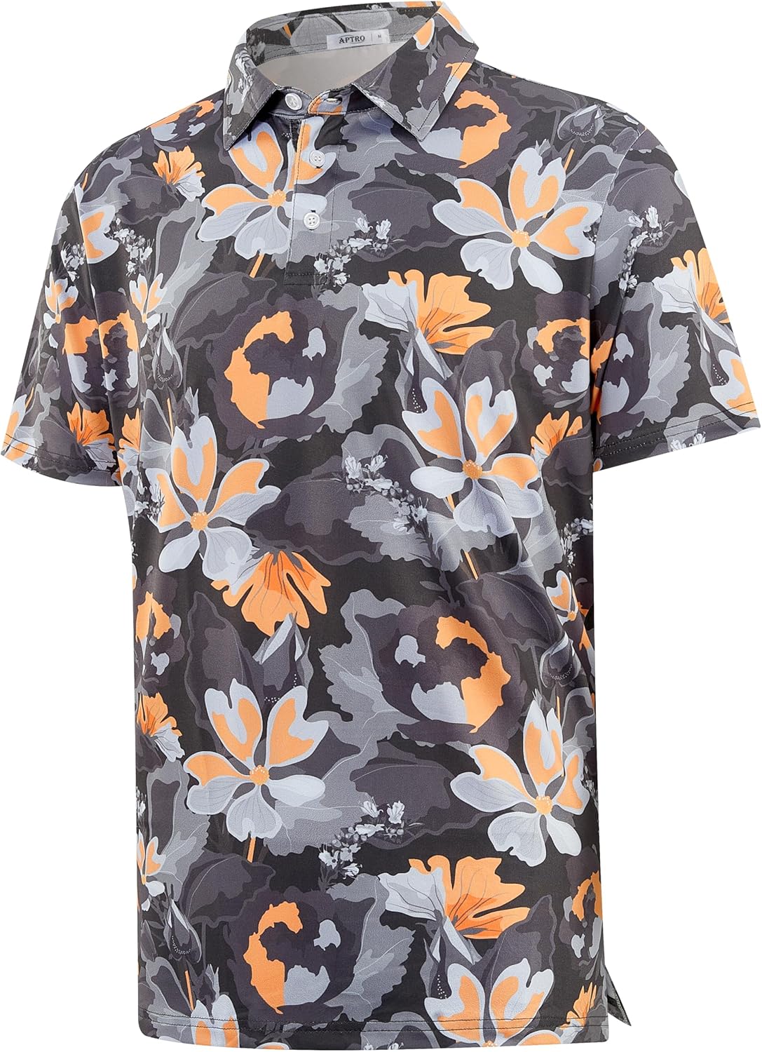 APTRO Golf Shirts for Men, Moisture Wicking Hawaiian Polo Shirts Dry Fit with Print and Short Sleeve
