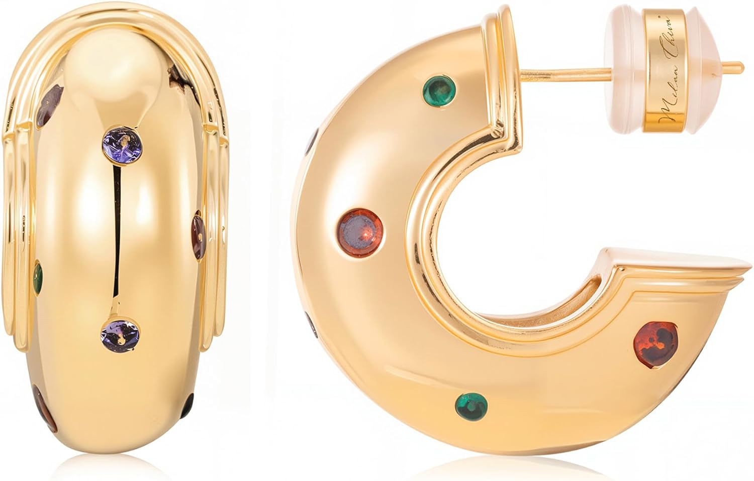 Milan Chiva Gold Chunky Hoop Earrings for Women Statement 14K Plated Thick Huggie Trendy Jewelry