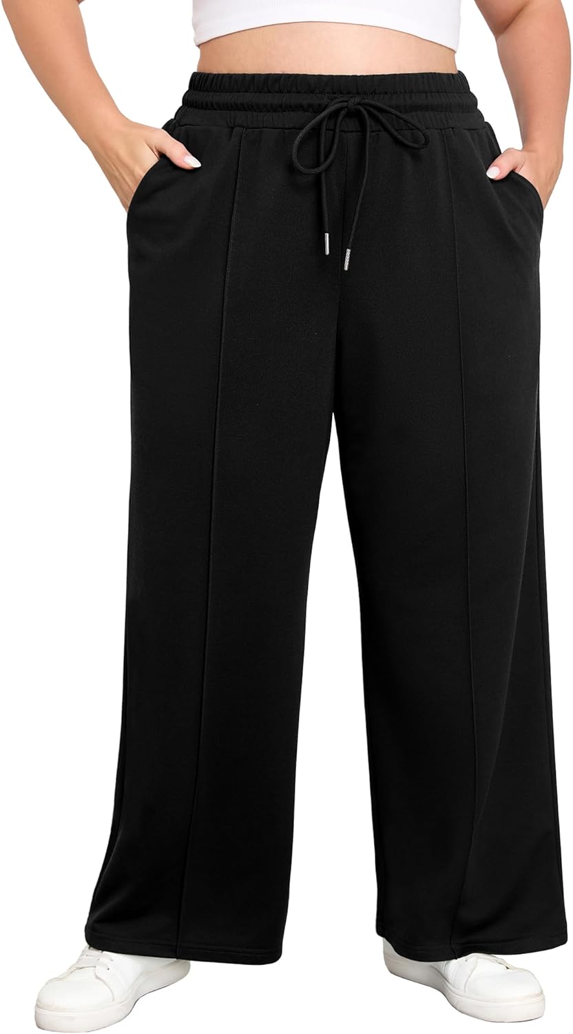 COOTRY Womens Plus Size Wide Leg Sweatpants High Waisted Drawstring Baggy Pants Athletic Yoga Sweat Pants