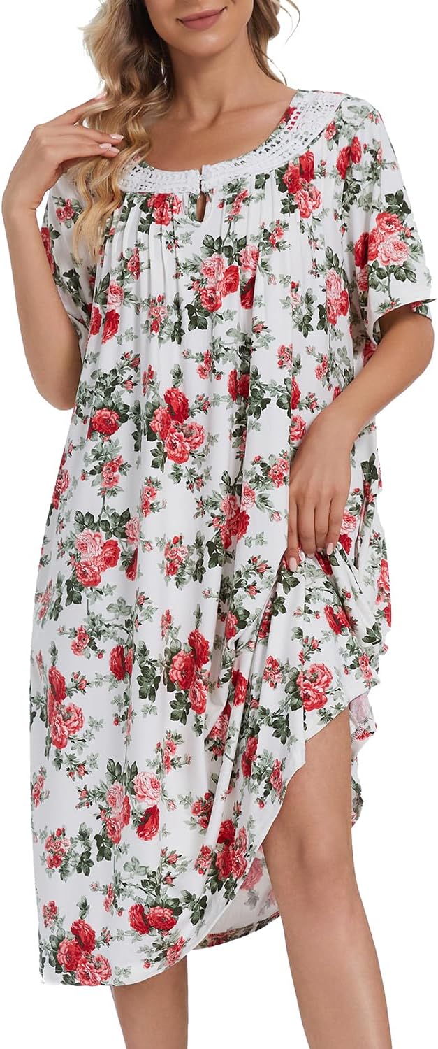COSUNIONY Cotton Nightgowns for Women Soft Sleep Dress Ladies Short Sleeve Sleepwear with Pockets