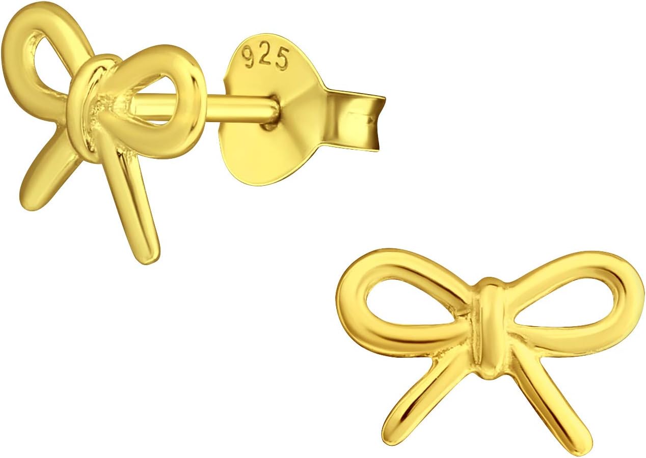 Gold Plated 925 Sterling Silver Bow Stud Earrings, Sold as a Pair