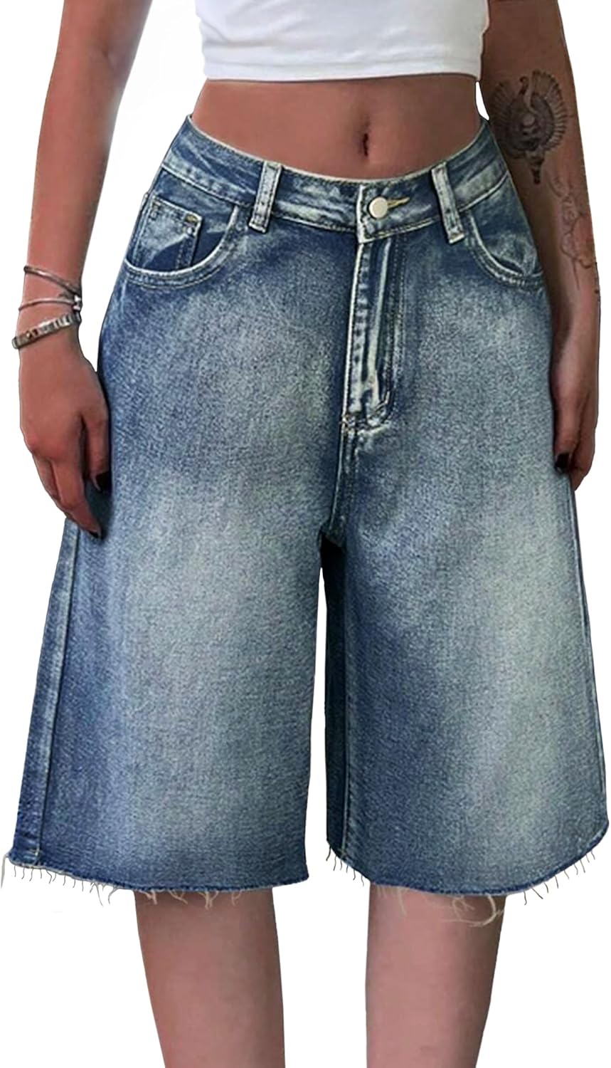 EMMIOL Women Jorts Baggy Jeans Jorts Outfits Mid-Low Waisted Denim Y2K Shorts Summer Hot Short Pants Streetwear
