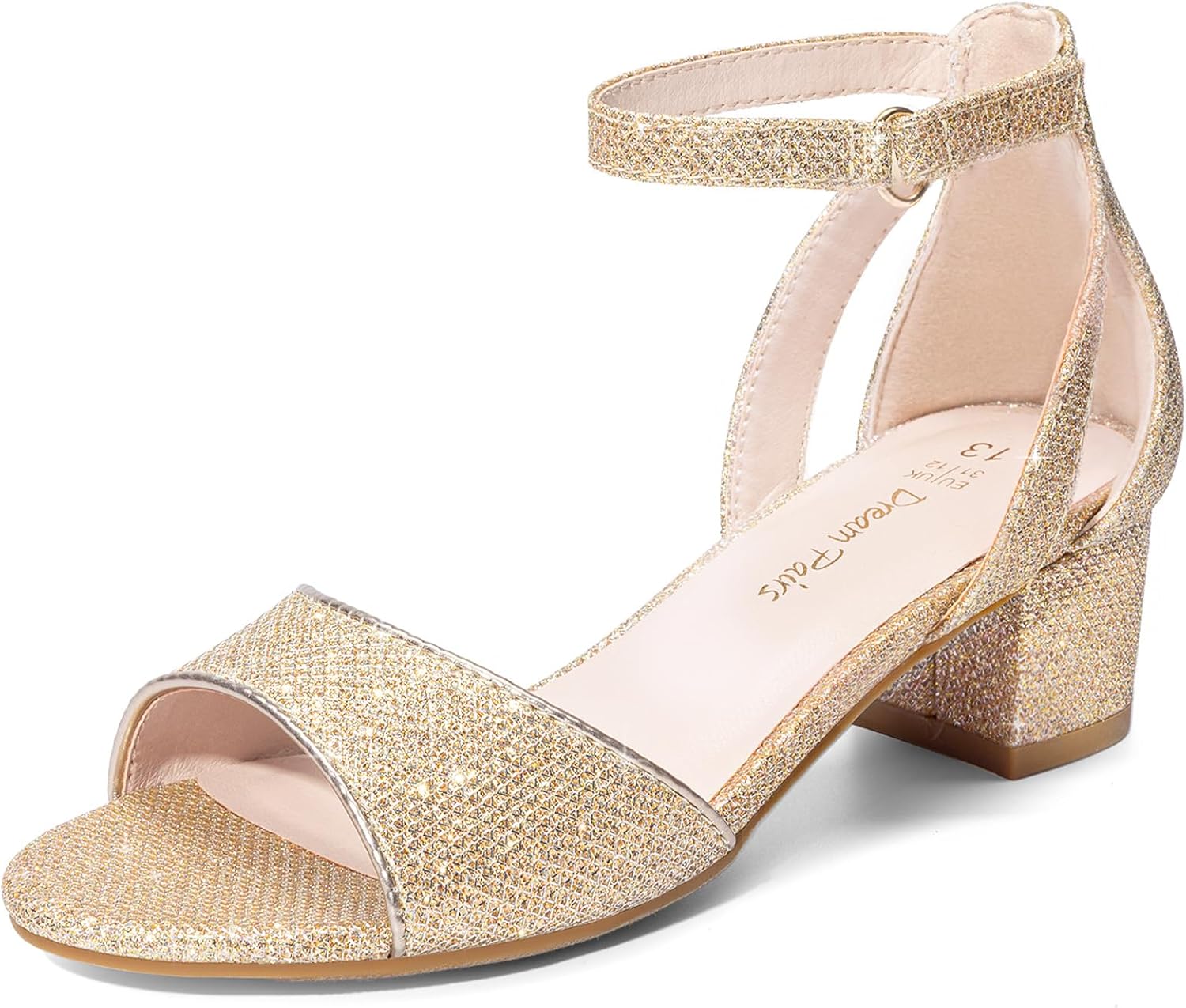 DREAM PAIRS Girls Sandals Chunky Pump Ankle Strap High Heels Dress Open Toe Flower Wedding Party for Little Big Kid