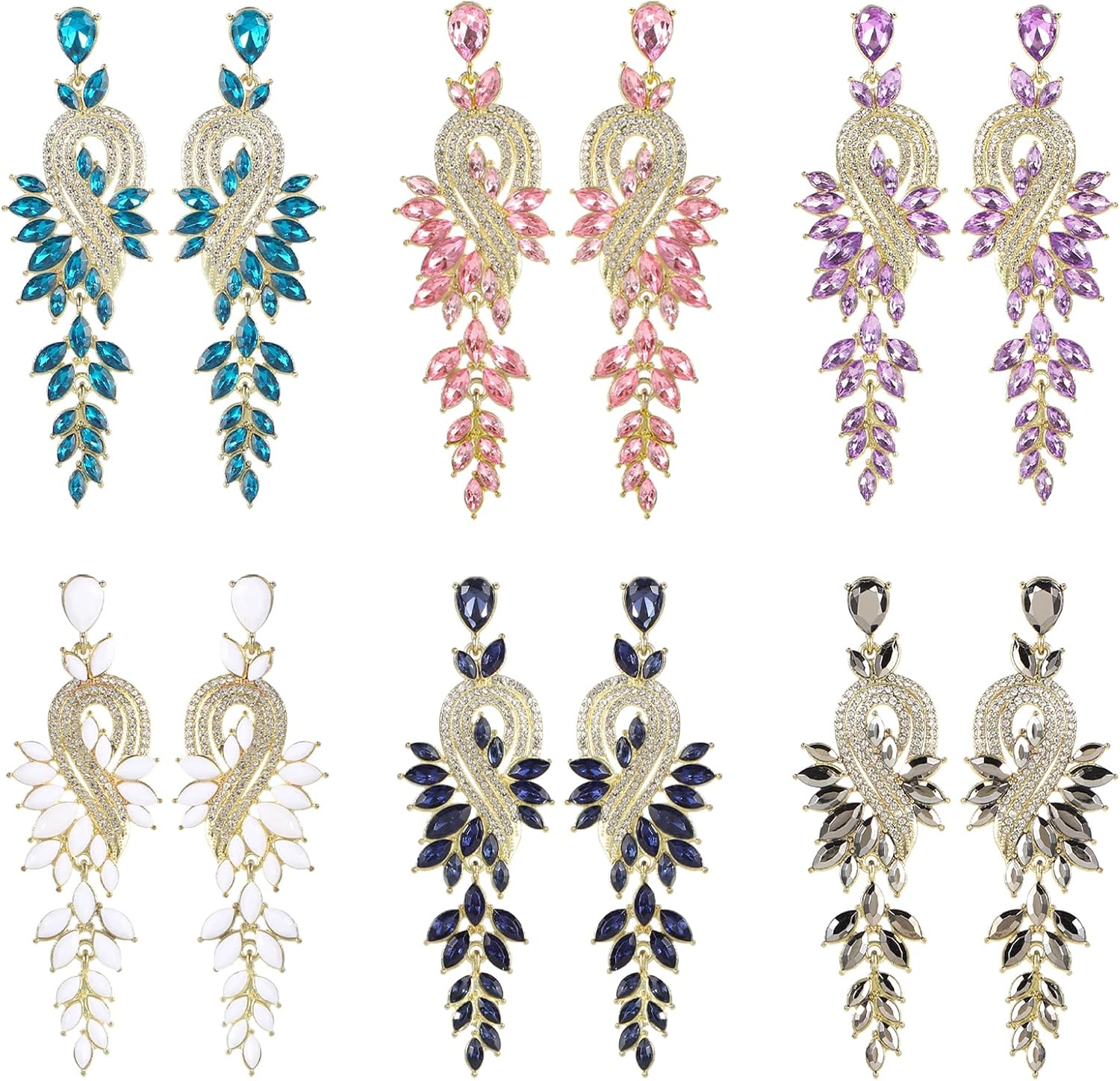Gorgoos 6 Pairs Leaf Design Drop chandelier Earrings dangle with Crystal Accents Bridal Wedding Evening Party Jewelry for Women