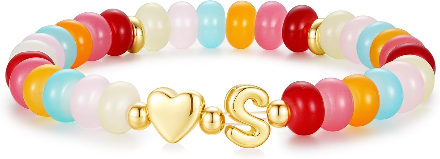 M MOOHAM Colorful Beaded Initial Bracelet for Women - Dainty Beaded Bracelets for Women Trendy Charm Letter A-Z Personalized Heart Jewelry Gifts