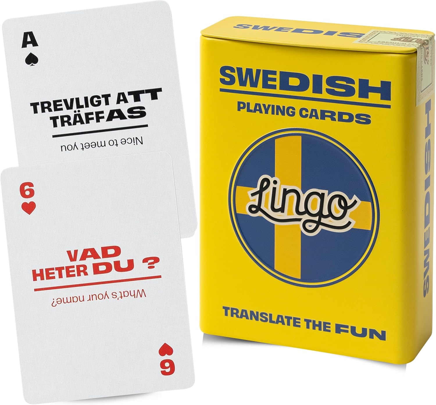 - EXPLORE AND PLAY ENDLESS –Add a touch of class and a dash of bilingual fun to your next game night. You can now learn Swedish phrases & words, and play your favorite card games like Poker, Black Jack, Spoons, Rummy, Go Fish, Memory, Crazy Eights, Hearts and Solitaire. Trust us, with these cards in your hand, you'll be the one everyone's talking about. Order your Lingo Playing Cards today and get ready for the most fun and exciting game night yet!