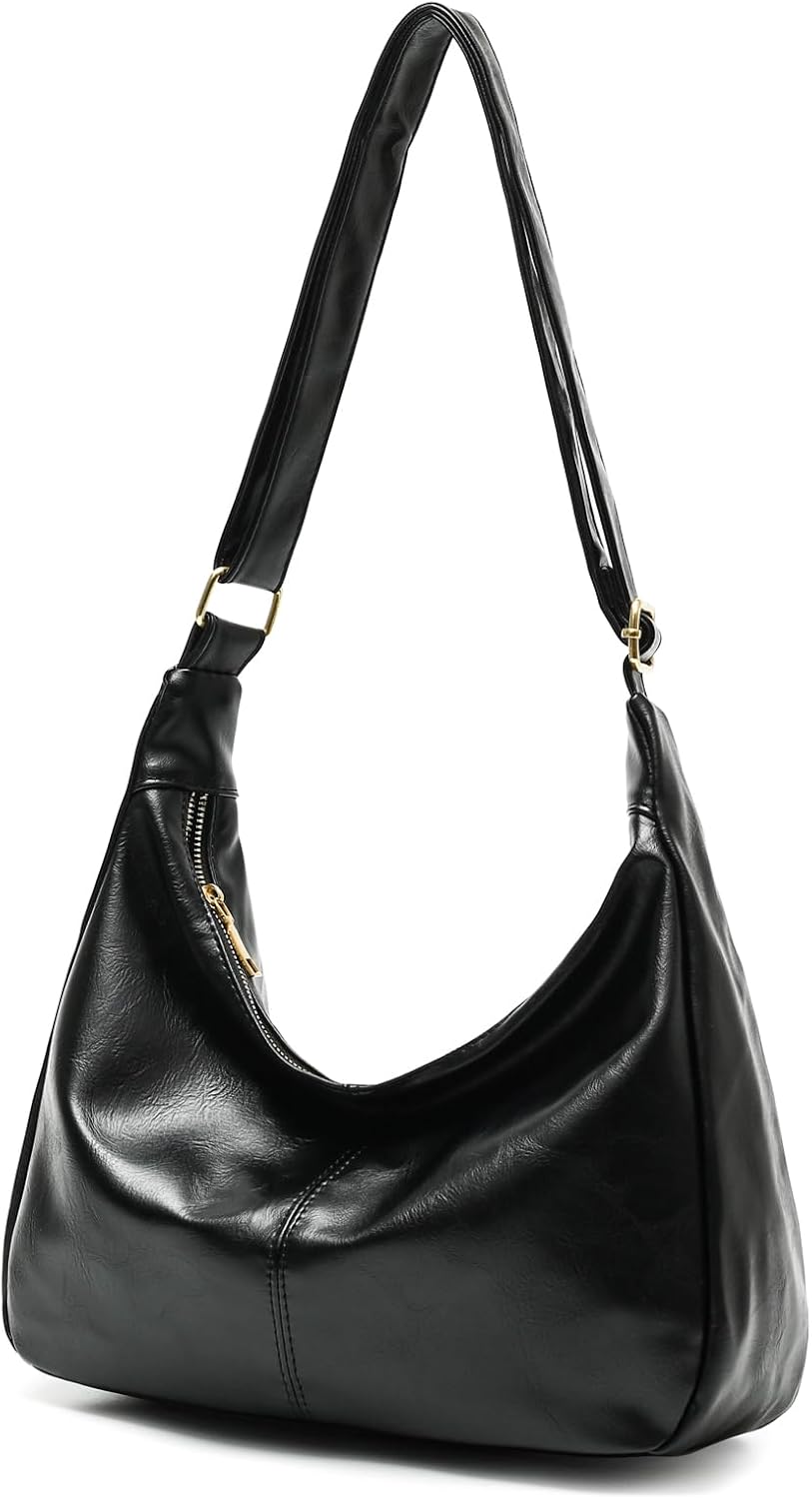 Slouchy Vegan Leather Shoulder Bag for Women,Trendy Soft Crossbody Hobo Bags,Stylish Everyday Tote Purses Handbags