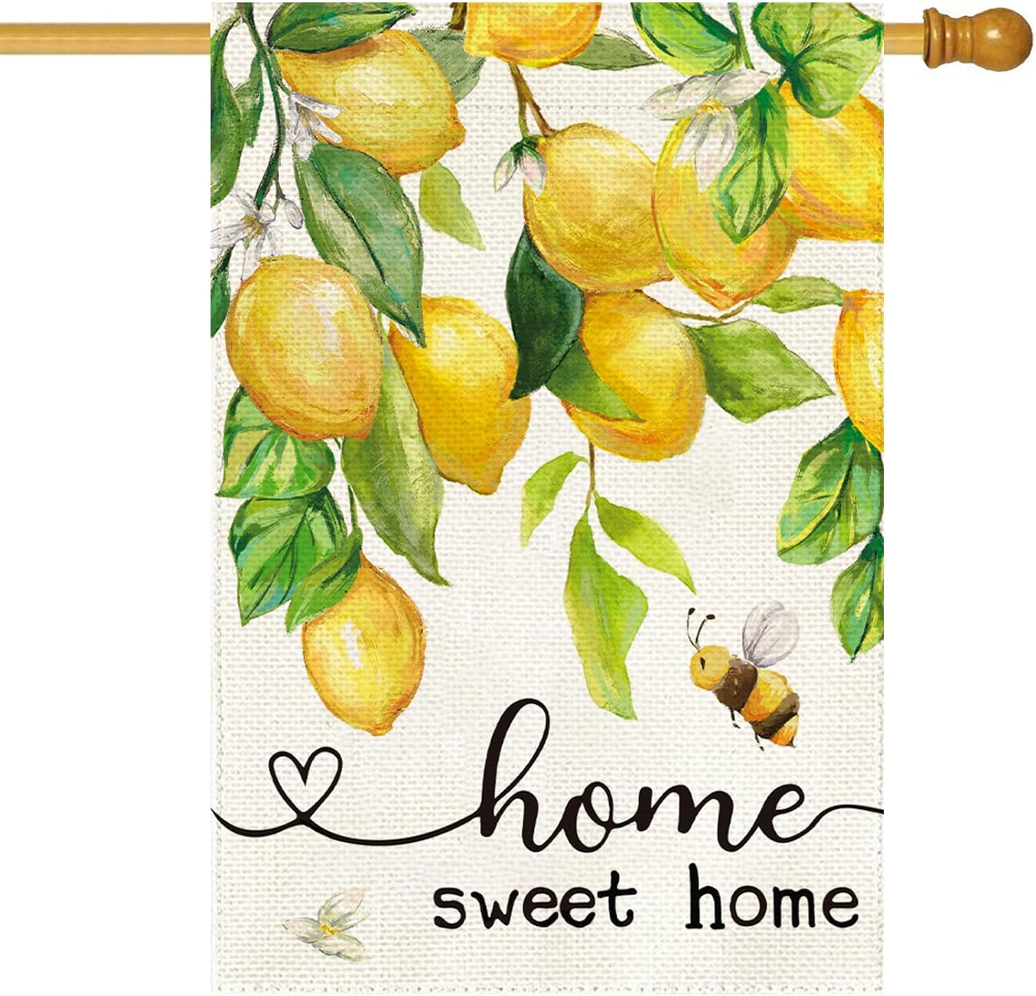 Baccessor Spring House Flag Lemon Bee Floral Home Sweet Home Large Yard Flag 28 X 40 Inch Double Sided Burlap Summer Welcome Flag for Outside Outdoor Porch Decor