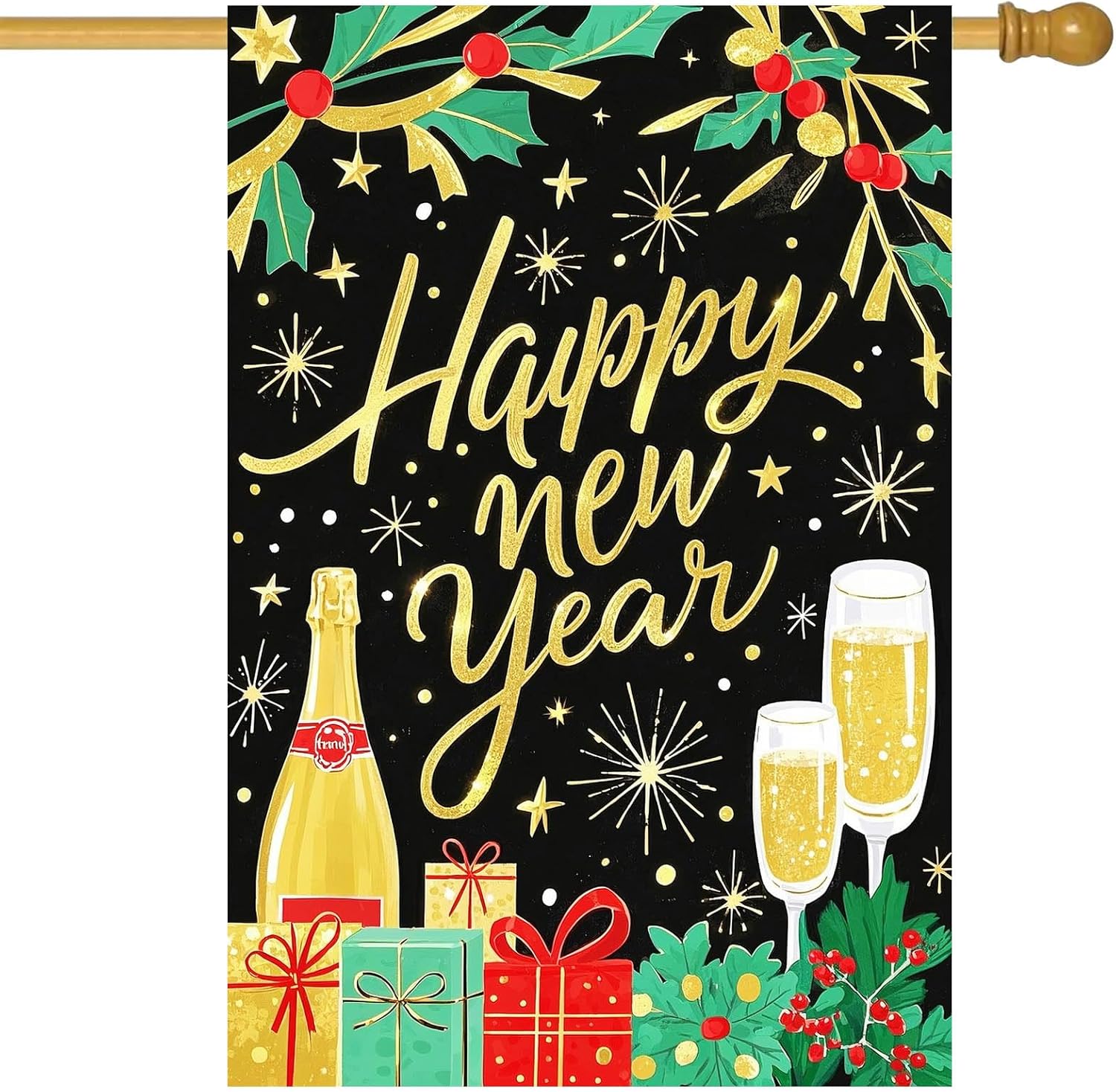 - Perfect Size: This Happy New Year house flag measures 28x40 inch and fits most standard garden flag poles It is ideal for porch balcony lawn or patio adding a cheerful holiday atmosphere to outdoor decoration.