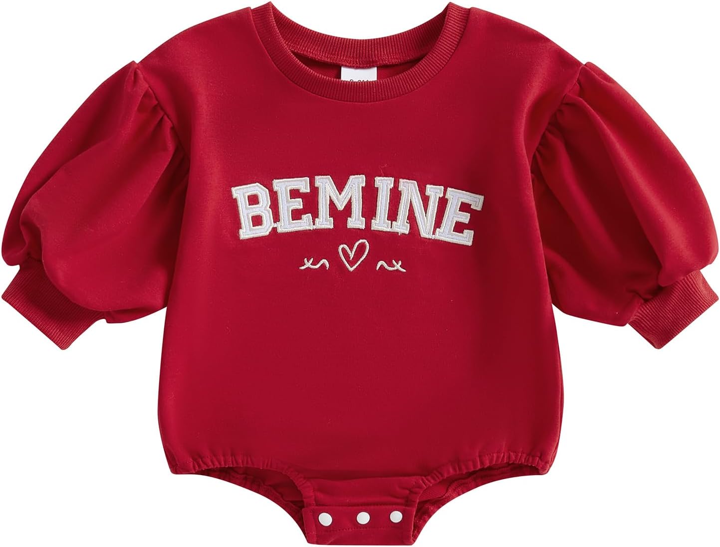 First Valentines Baby Girl Outfit Newborn Be Mine Bubble Romper Heart Shaped Embroidered Long Sleeve Clothes