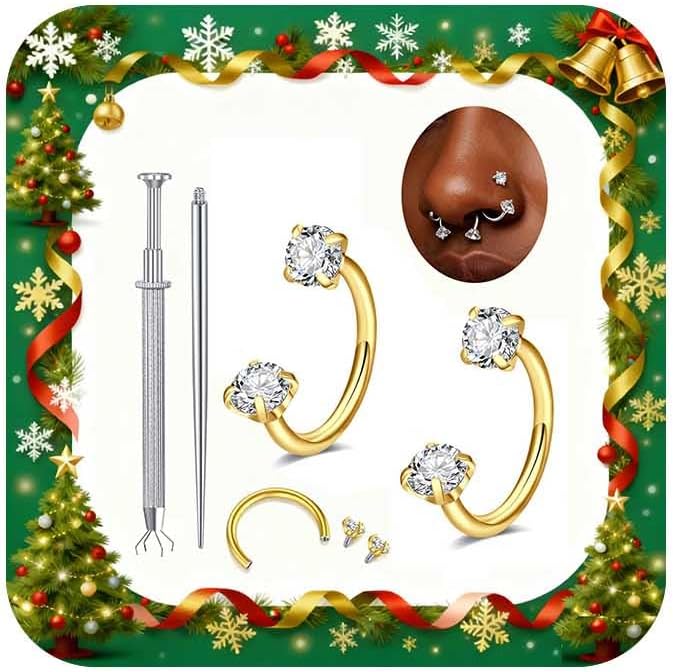 MODRSA 18g Horseshoe Nose Ring Hoop 6mm 18 gauge Gold Double Gem Horse Shoe Nose Rings for Women Surgical Steel Half Hoop U Shape Small Tragus Earring Gold Helix Piercing Jewelry Septum Rings 18g