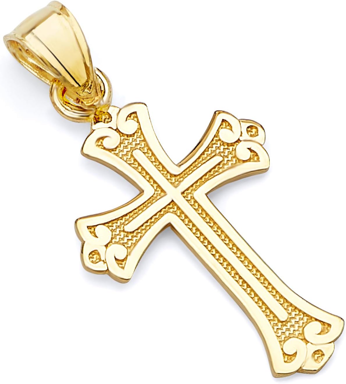 14k REAL Yellow Gold Religious Cross Charm Pendant