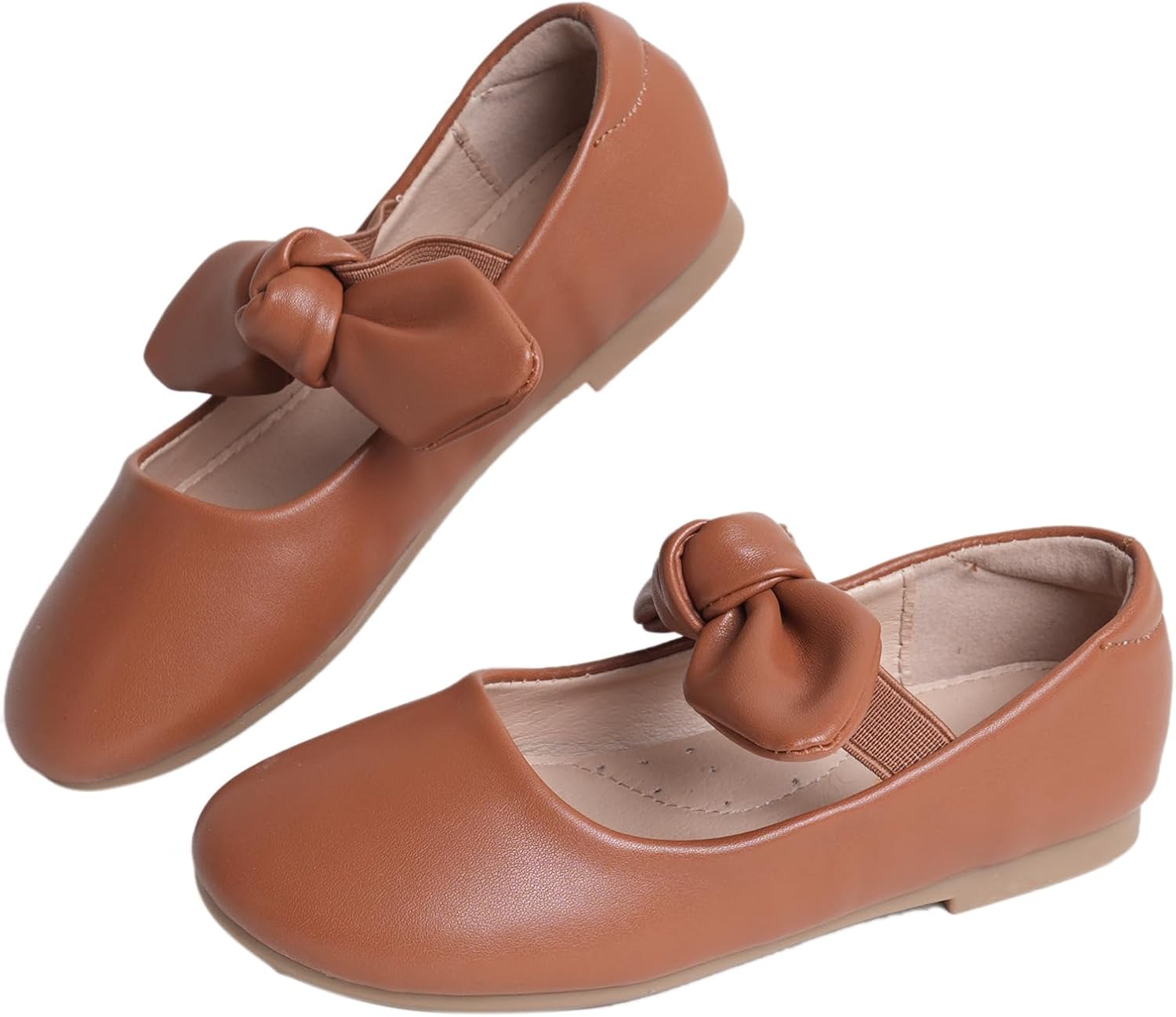 Girls Mary Jane Dress Shoes Ballerina Flats - Toddler/Little Kid Bow Decor for School & Daily Wear Comfortable Slip-On Uniform Shoes for Parties, Weddings & Casual Occasions
