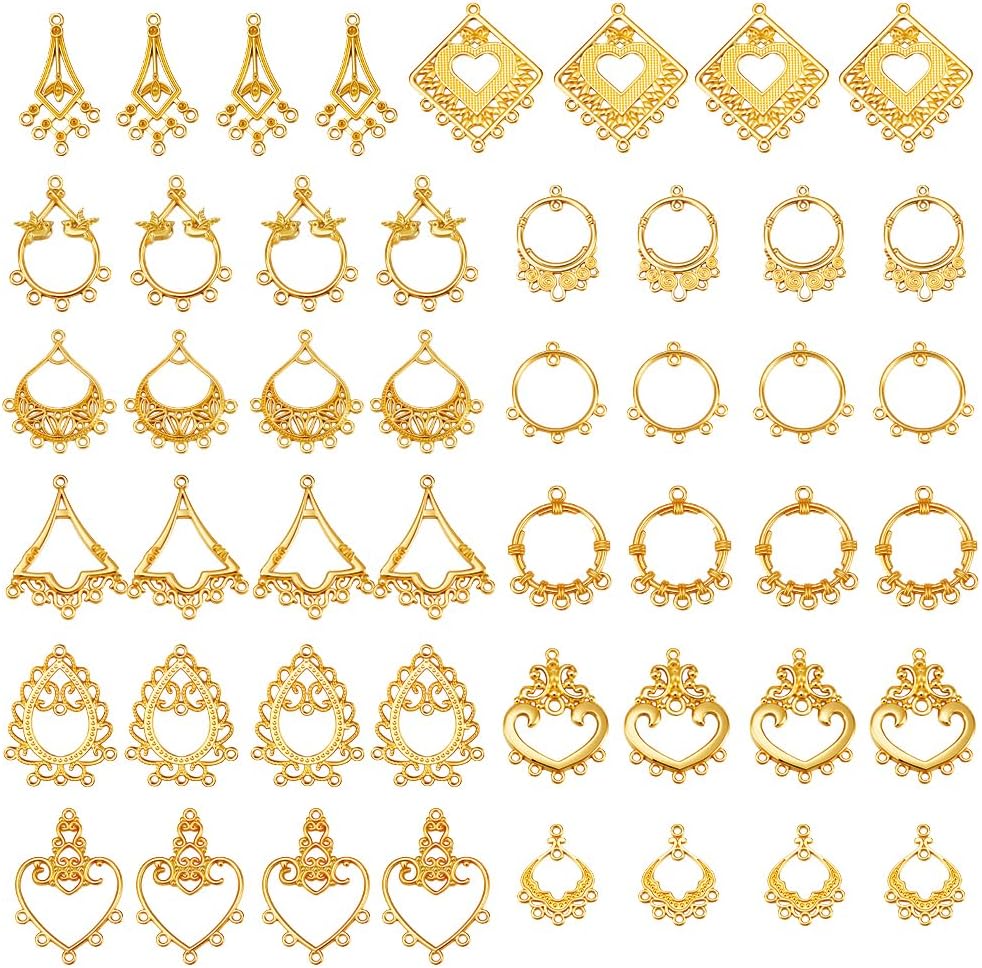 PH PandaHall 96pcs 12 Styles Vintage Hoop Earrings Charms Golden Filigree Chandelier Connector Large Tibetan Flower Dreamcatcher Charm Pendant for Dangle Earrings DIY Jewelry Making Crafting, 1.1~1.7 inch