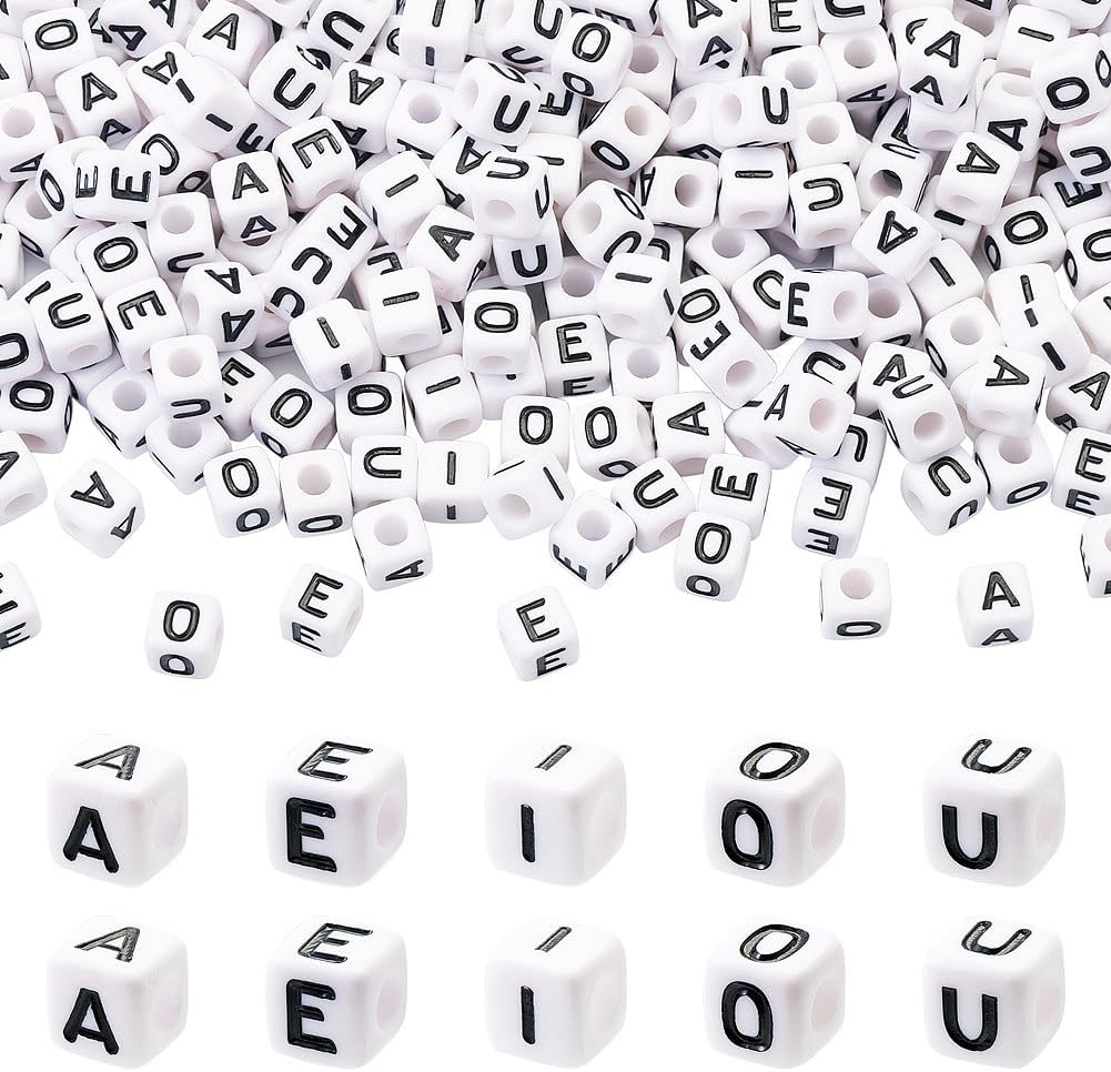 FASHEWELRY 300Pcs Large Hole Acrylic Vowel Letter Beads Cube 8mm Square Alphabet Beads Loose Spacer Bead for Friendship Bracelets Necklaces Earrings Keychain DIY Crafts Jewelry Making White