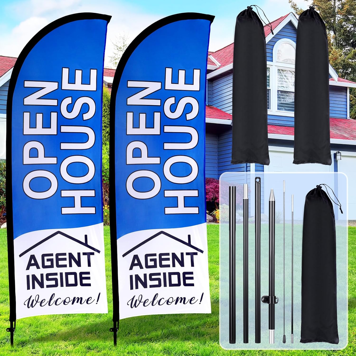 - Nice Eye Catcher: our open house flags for real estate will be very eye catching for indoor and outdoor use and make your location or events stand out, the flying feather banner with vibrant colors will grab attention at a distance to attract many customers to your office, these opening signs banner will be a good choice if you want to increase foot traffic to your open house event