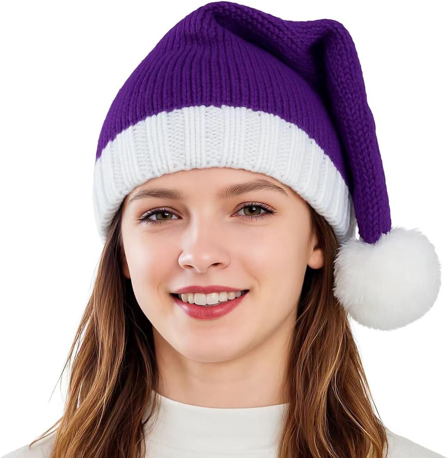 Christmas Knit Santa Hats for Women,Purple Christmas Hat Xmas Winter Warm Hats Knitted Beanie Skull Cap