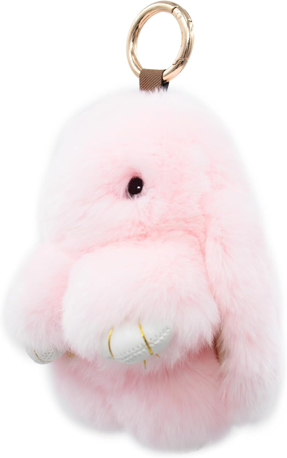 surell - Genuine Rex Rabbit Fur Pom Bunny Rabbit Keychain - Cute fluffy Bag Purse Charm key fob - Animal Lovers Pocketbook Accessory (Pink)