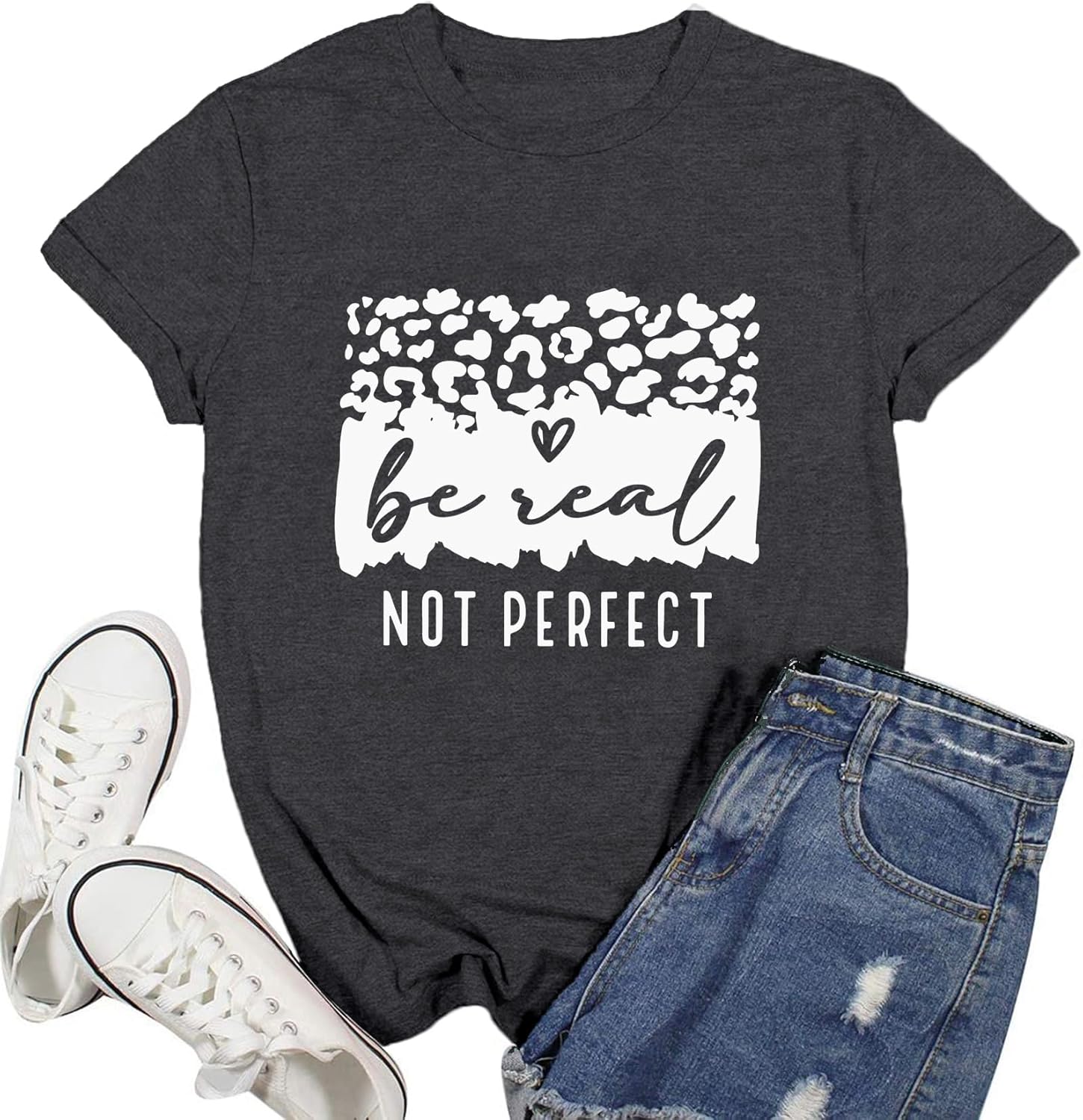 Kindness Shirt for Women Be Real Not Perfect T-Shirt Inspirational Positive Tee Tops