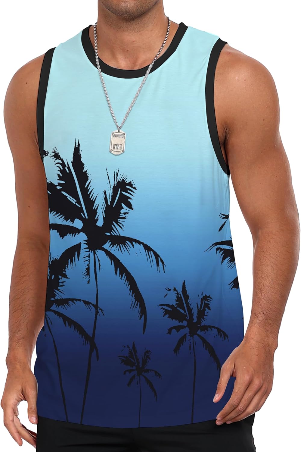 Mens Graphic Tank Tops Sleeveless Workout Gym Shirts Beach Hawaiian Coconut Tree Patriotic Style T-Shirt 2025