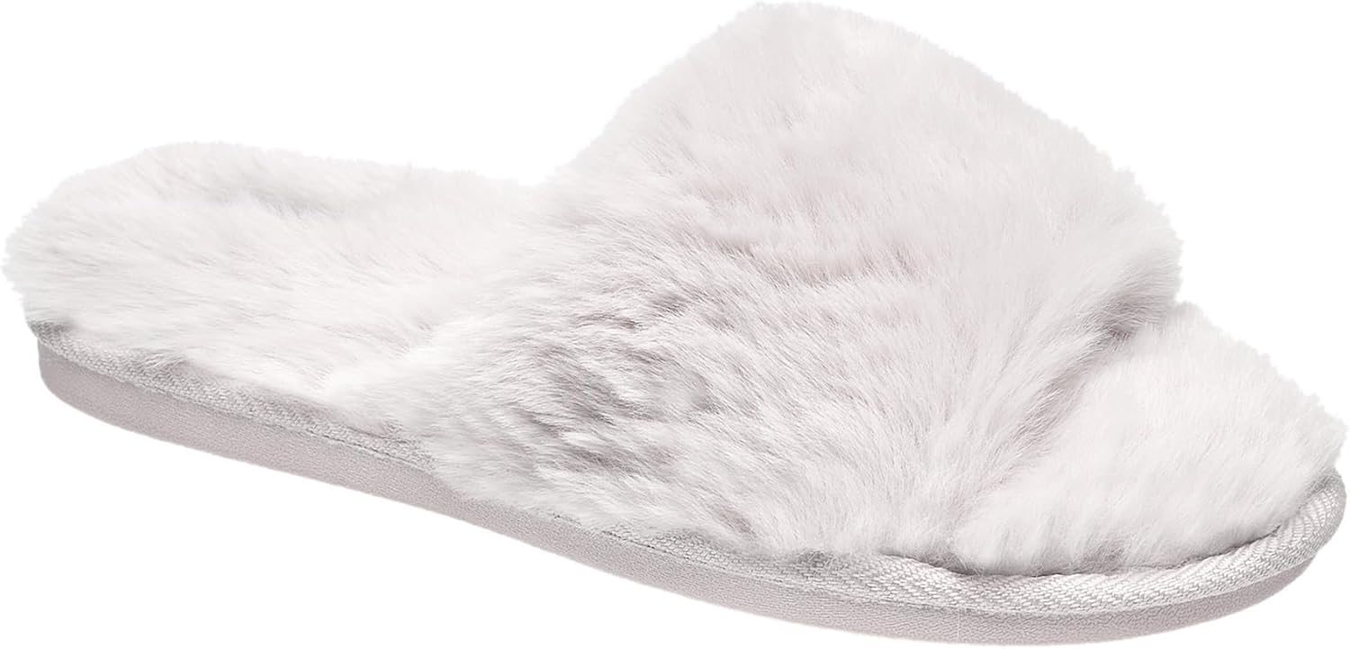 Nine West Women's Cozy Fleece Slide Slippers – Soft Plush Fur with Open Toe Design