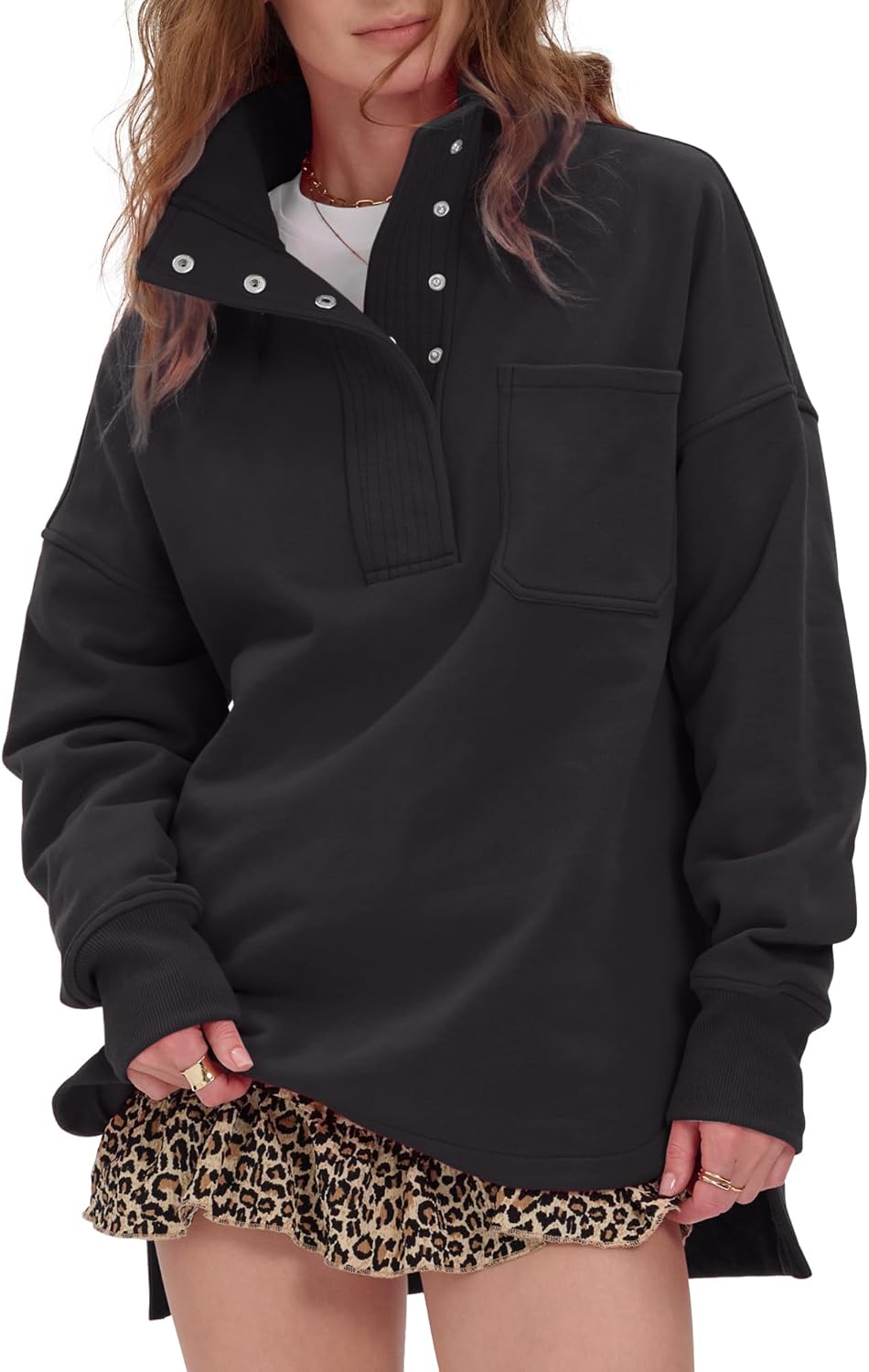 Gacaky Womens Oversized Sweatshirts Casual Button Henley Neck Side Slit Pullover Fall Winter Fashion Outfits Clothes