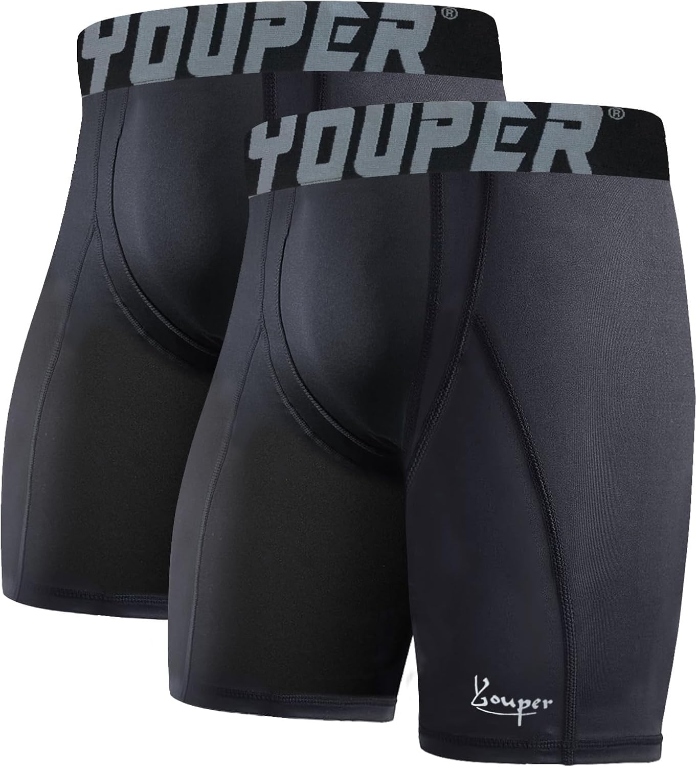 Youper 2-Pack Adult Compression Shorts w/Cup Pocket, Men's Athletic Supporter for Baseball & Football