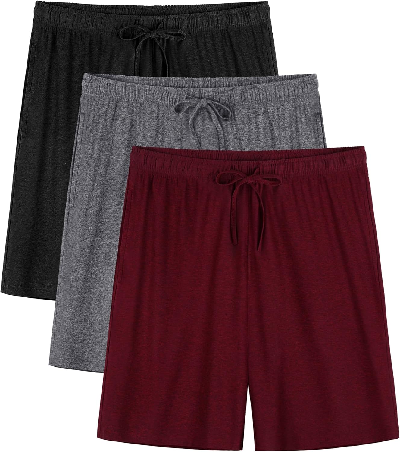 3 Pack Mens Pajama Shorts, Soft Sleep Shorts with Pockets Elastic Waist Drawstring Lounge Dry Fit Sleepwear Bottoms