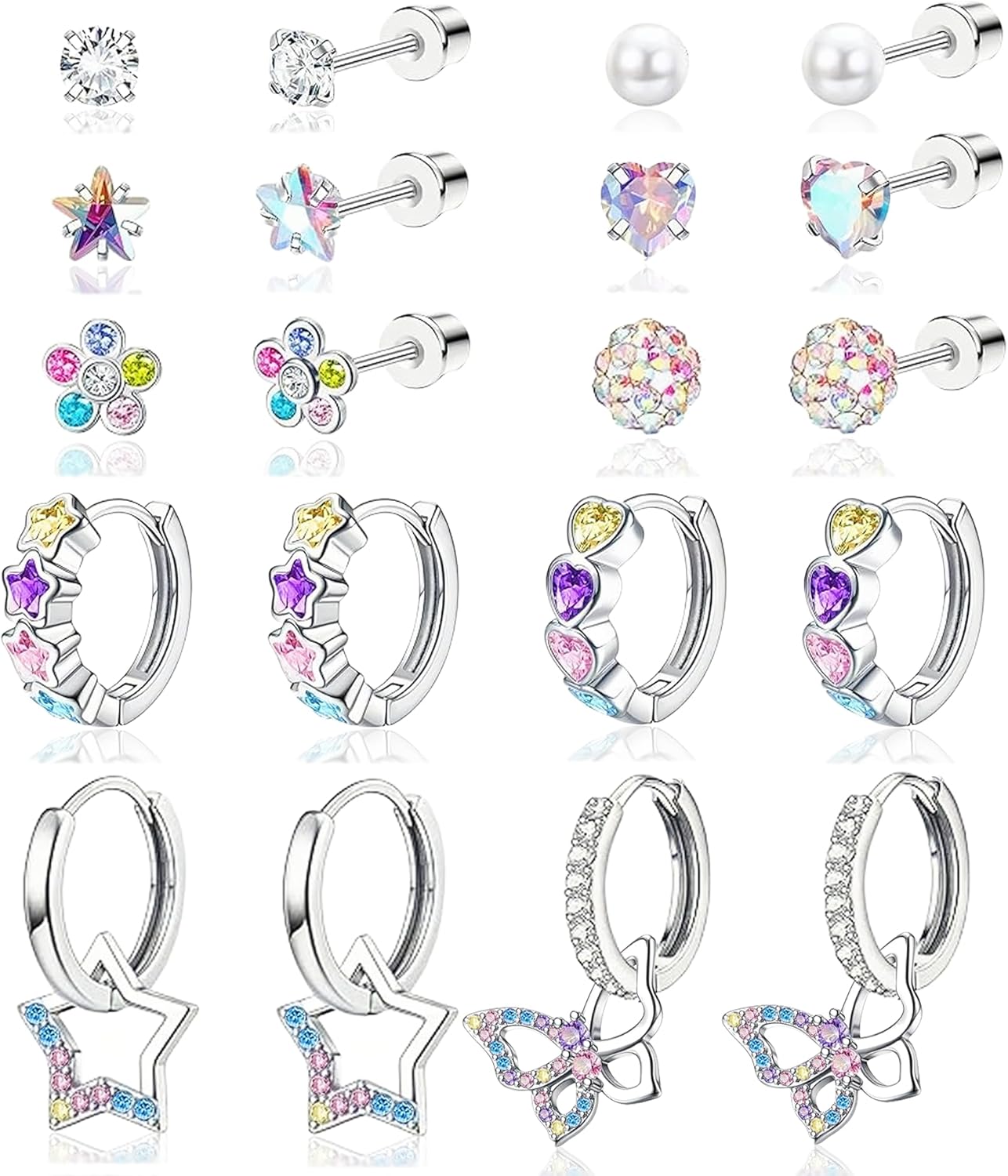 10 Pairs Hypoallergenic Screw Back Earrings For Women Girls Surgical Steel Small Huggie Hoop Earrings Cute CZ Star Butterfly Dangle Hoop Earrings Screwback Stud Earrings Set For Sensitive Ears