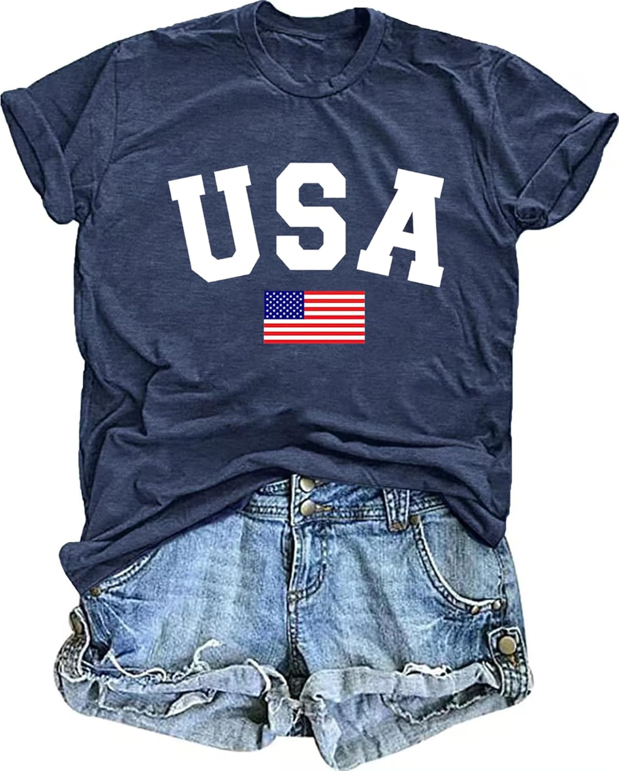 American Flag Shirts for Women: USA Flag Graphic Tee 4th July T Shirt Blouse Tops