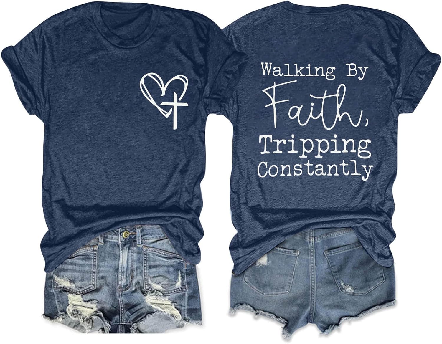 Christian Shirts for Women Walking by Faith Tripping Constantly Religious Tshirt Inspirational Bible Verse Tee