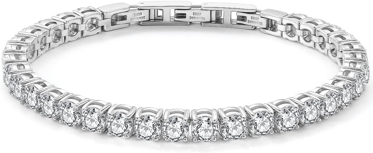 Tennis Bracelet for Women Men, 14K Gold Plated Round 3mm/4mm/5mm AAAA+ Cubic Zirconia CZ Dainty Classic Adjustable Stainless Steel Bracelets Festival Wedding Jewelry Gift