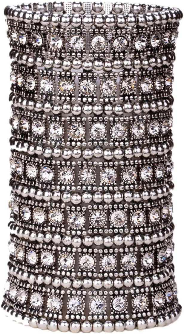 YACQ Women's Multilayer Wide Stretch Cuff Bracelets Fit Various Wrist Sizes - Soft Elastic Band - Lead & Nickle Free